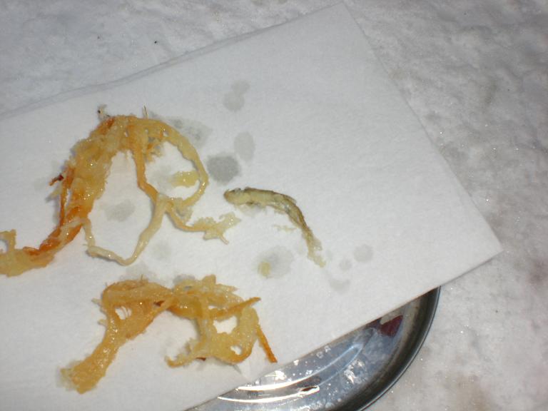 寂しい限りの一匹だけのワカサギの天婦羅。